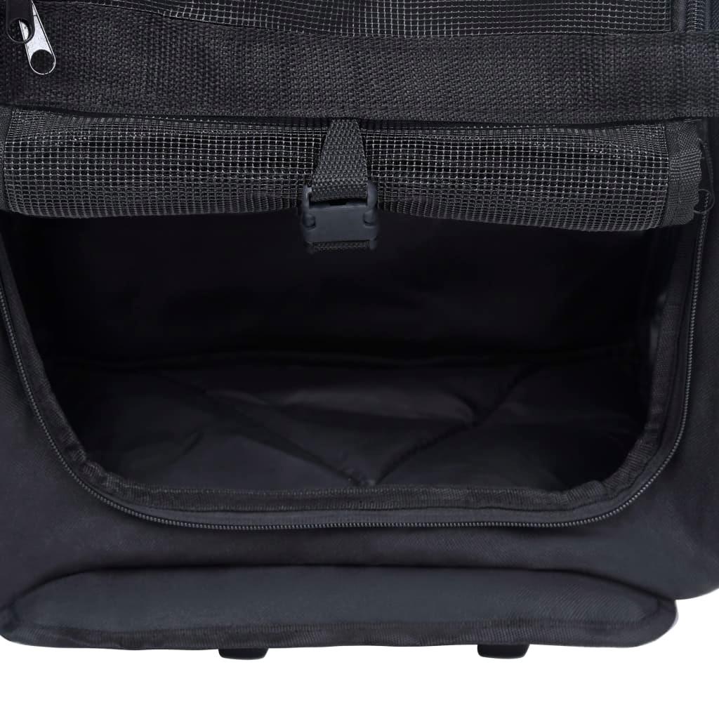 This collapsible trolley, featuring an all-in-one design, can also be used as a pet backpack and a pet handbag. It is a perfect choice for pet owners. This pet carrier is light and well-ventilated, with strong mesh windows on three sides, making it a comfortable shelter for your furry friend. The zippered doors can be rolled up or down. Hence, it is easy for your pet to get in and out. This pet trolley also boasts 2 zippered storage pockets for carrying small items like toys, treats, etc. This pet trolley, made of metal and fabric, is very durable.
